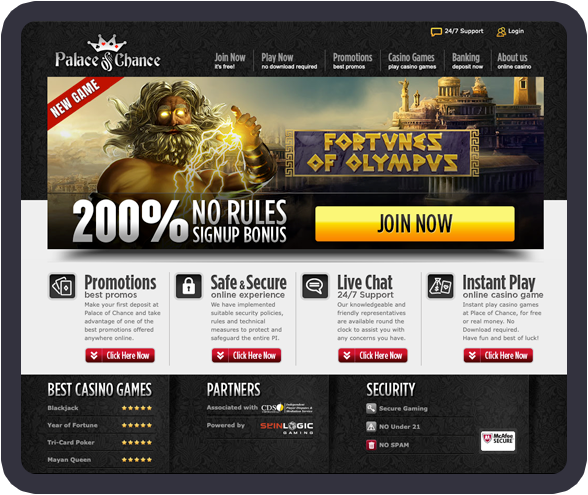 A kingdom full of games and bonuses is at your fingertips! Palace of Chance Casino is the epitome of gaming perfection, offering a wide selection of real money casino games, exceptional customer support, and bonuses to pad out your bankroll from the minute you sign up. The clean-cut, mobile-optimized interface makes it easy for players to access and play their favorite games on the move while the service team is on standby day and night to ensure that any queries or concerns you may have are promptly addressed. With a generous welcome bonus, lots of payment options to choose from, and a VIP program, players have multiple opportunities to increase their winnings and up the fun at Palace of Chance.